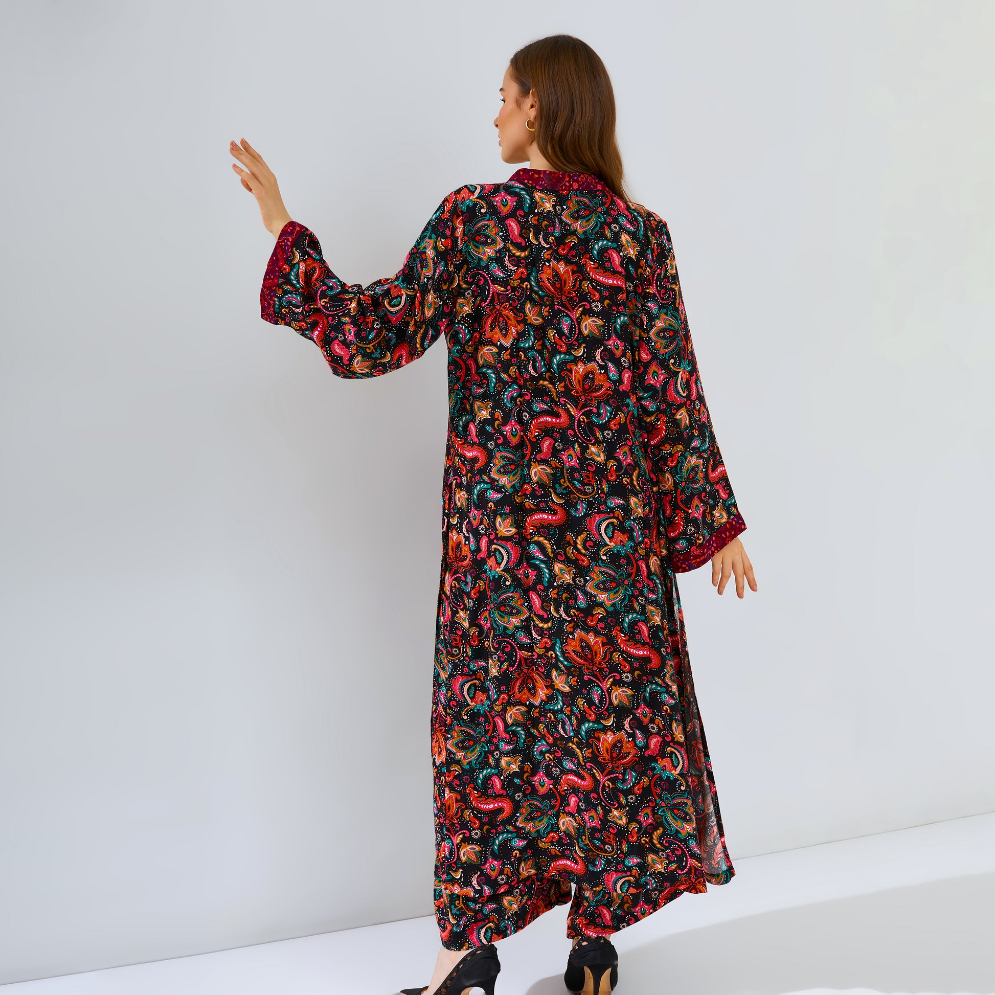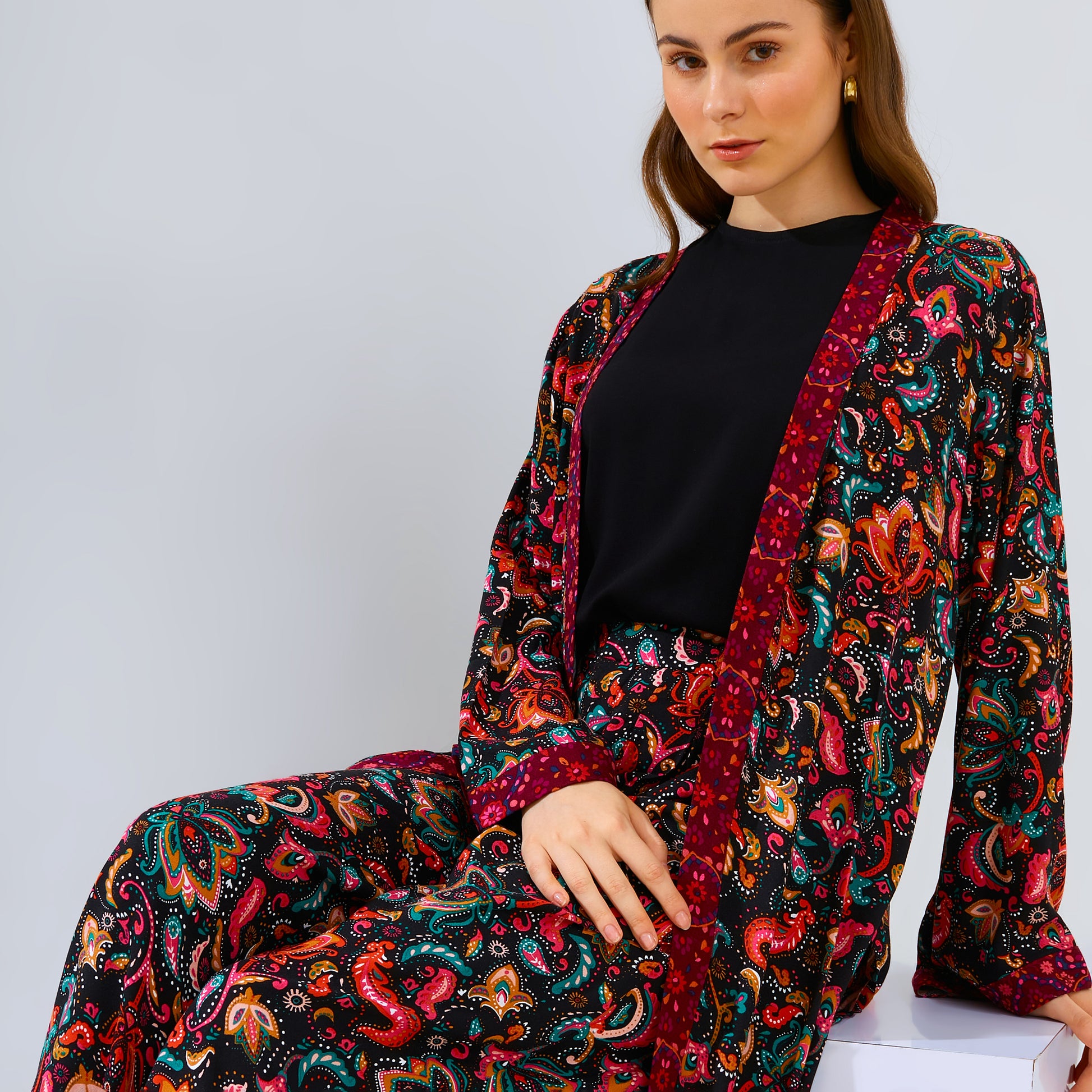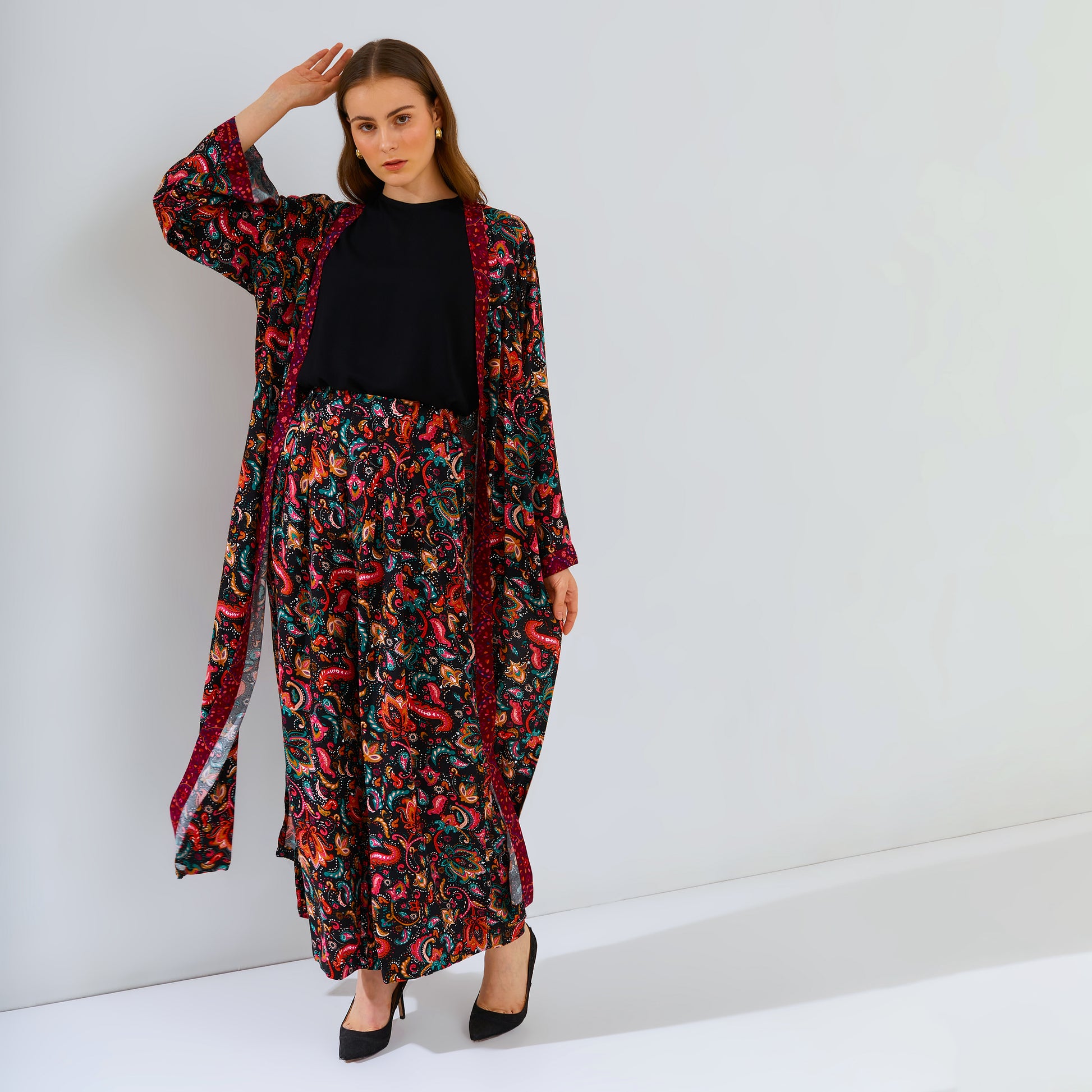 Introduce your wardrobe to Amaya Black, the perfect combination of comfort, style and quality. Crafted with an eye-catching motif print and combining a culotte pant with an outer layer - it's easy to stand out with this unique and limited design. Feel gorgeous, casual and cool with Amaya Black.