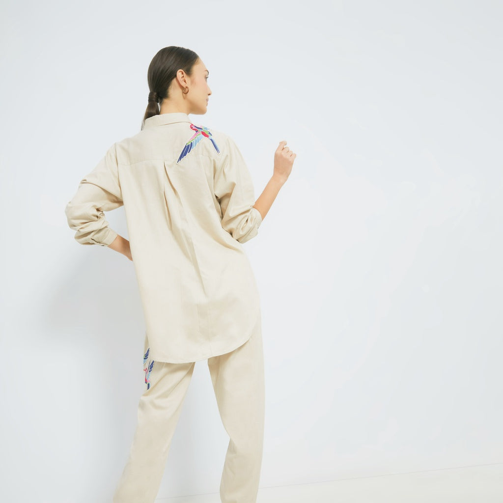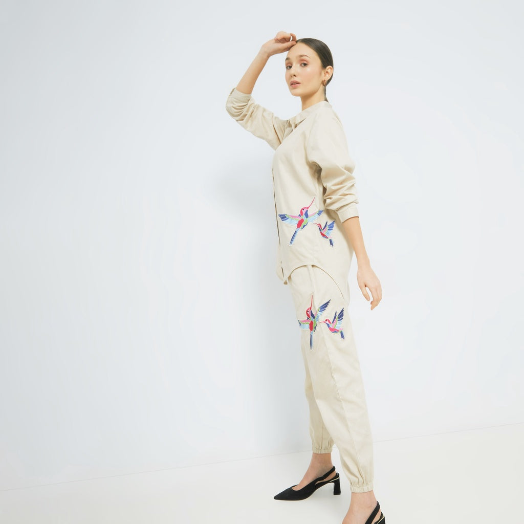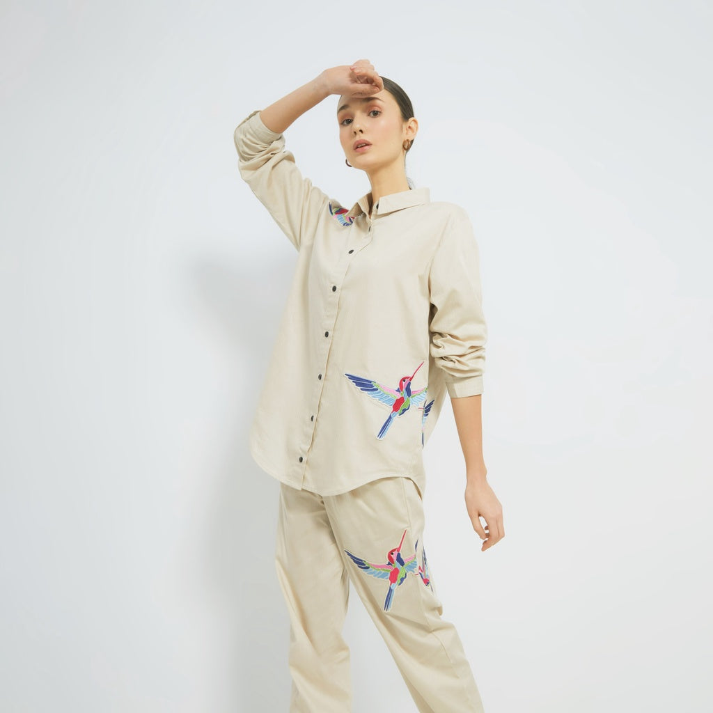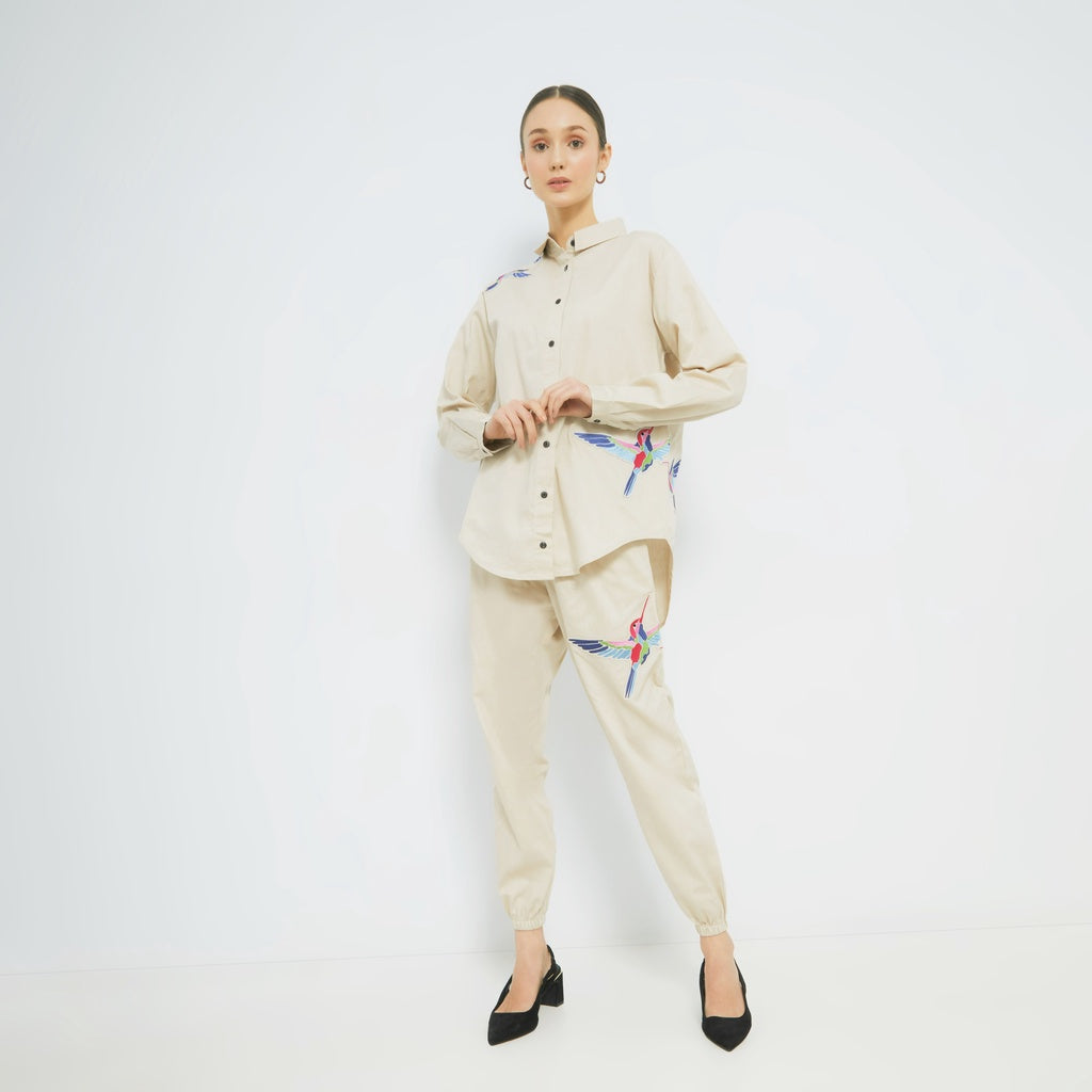 Hummingbird adalah ide dari motif embroidery koleksi Huri Shirt kali ini. Keindahan dari Burung kecil ini sangat menginspirasi pada detail Huri Shirt. Embroidery atau lebih dikenal dengan Bordir ini membuat koleksi Huri shirt menjadi lebih elegan dan manis. Tekhnik Patchwork pada beberapa bagian, membutuhkan kesabaran dan kejelian dalam tekhnik pembuatan nya.