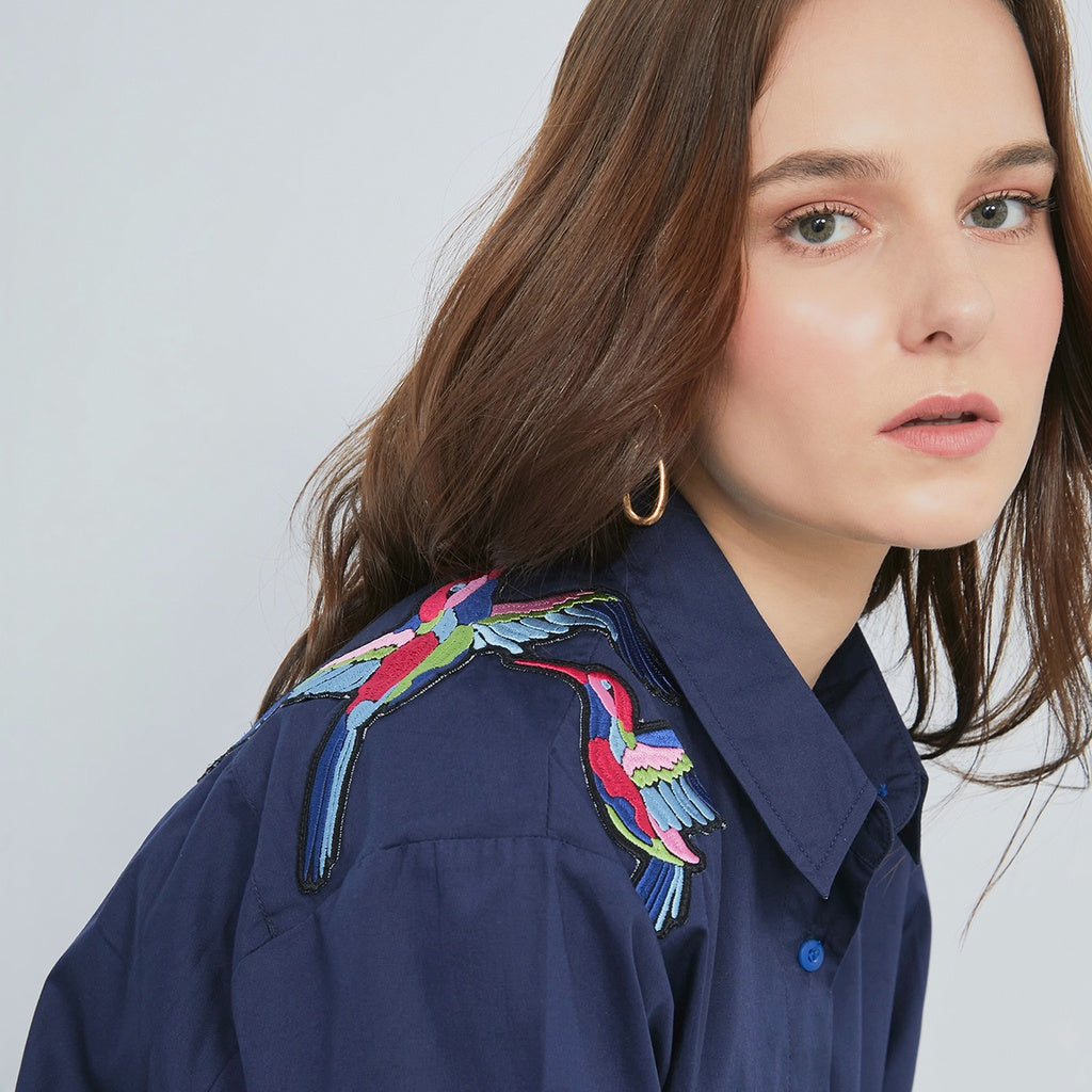 Hummingbird adalah ide dari motif embroidery koleksi Huri Shirt kali ini. Keindahan dari Burung kecil ini sangat menginspirasi pada detail Huri Shirt. Embroidery atau lebih dikenal dengan Bordir ini membuat koleksi Huri shirt menjadi lebih elegan dan manis. Tekhnik Patchwork pada beberapa bagian, membutuhkan kesabaran dan kejelian dalam tekhnik pembuatan nya.