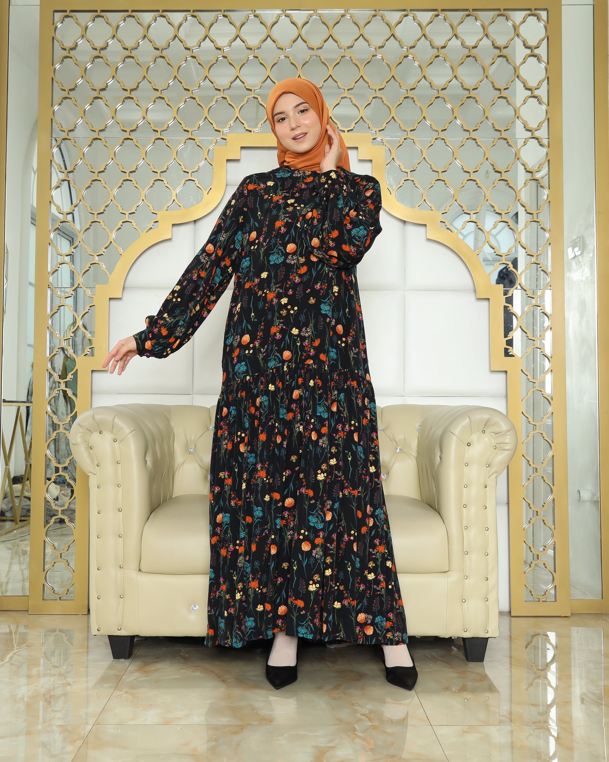 Madeena Dress is the perfect choice for showcasing elegance with undeniable style. Designed with captivating floral prints and crafted from soft viscose cotton fabric, this dress provides a gentle touch to your skin.