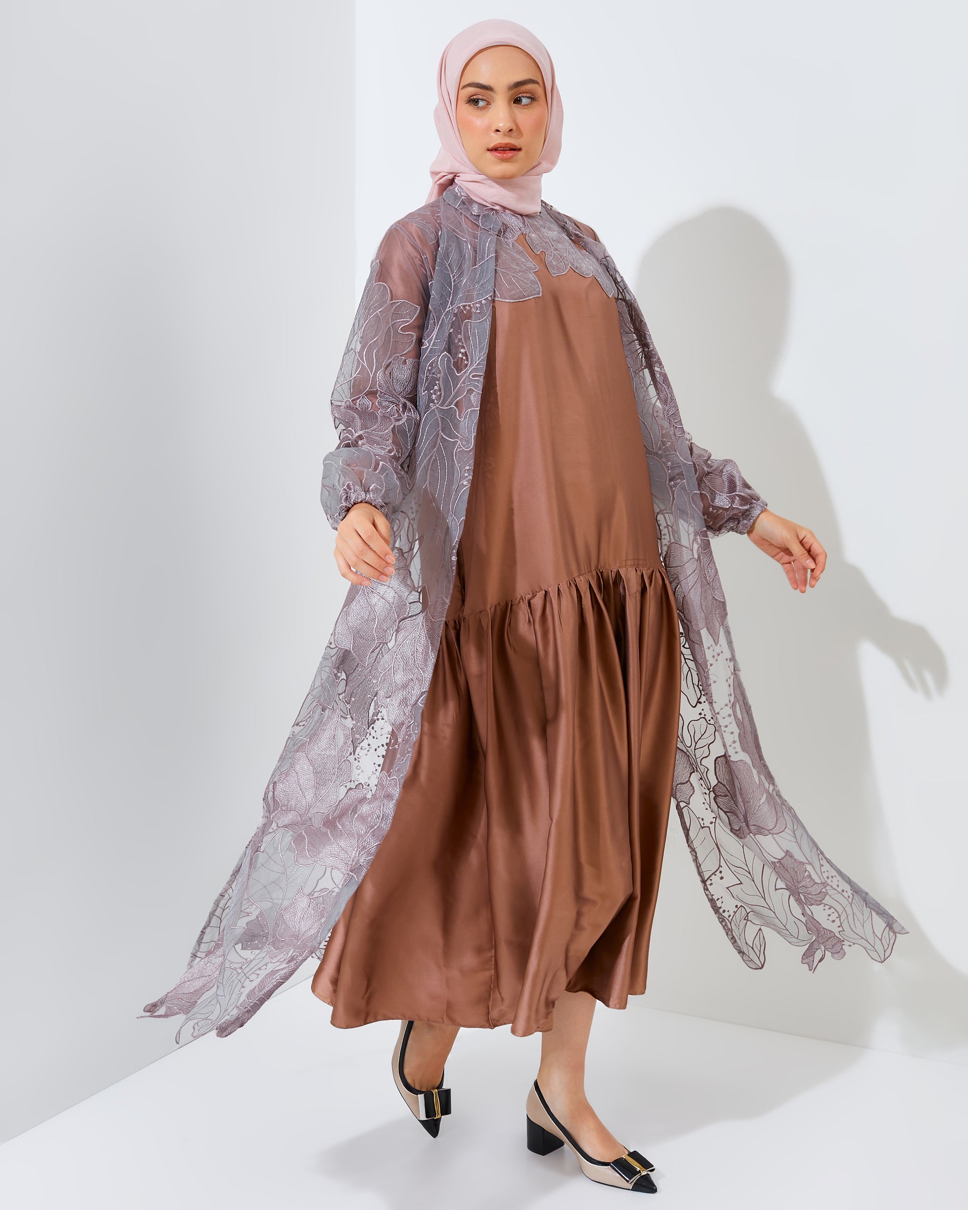 With the "Omeera Matching Set," you'll look elegant and feel comfortable throughout the Ramadan month. Available in various colors to suit your taste. Make this set a part of your special appearance during this holy month!