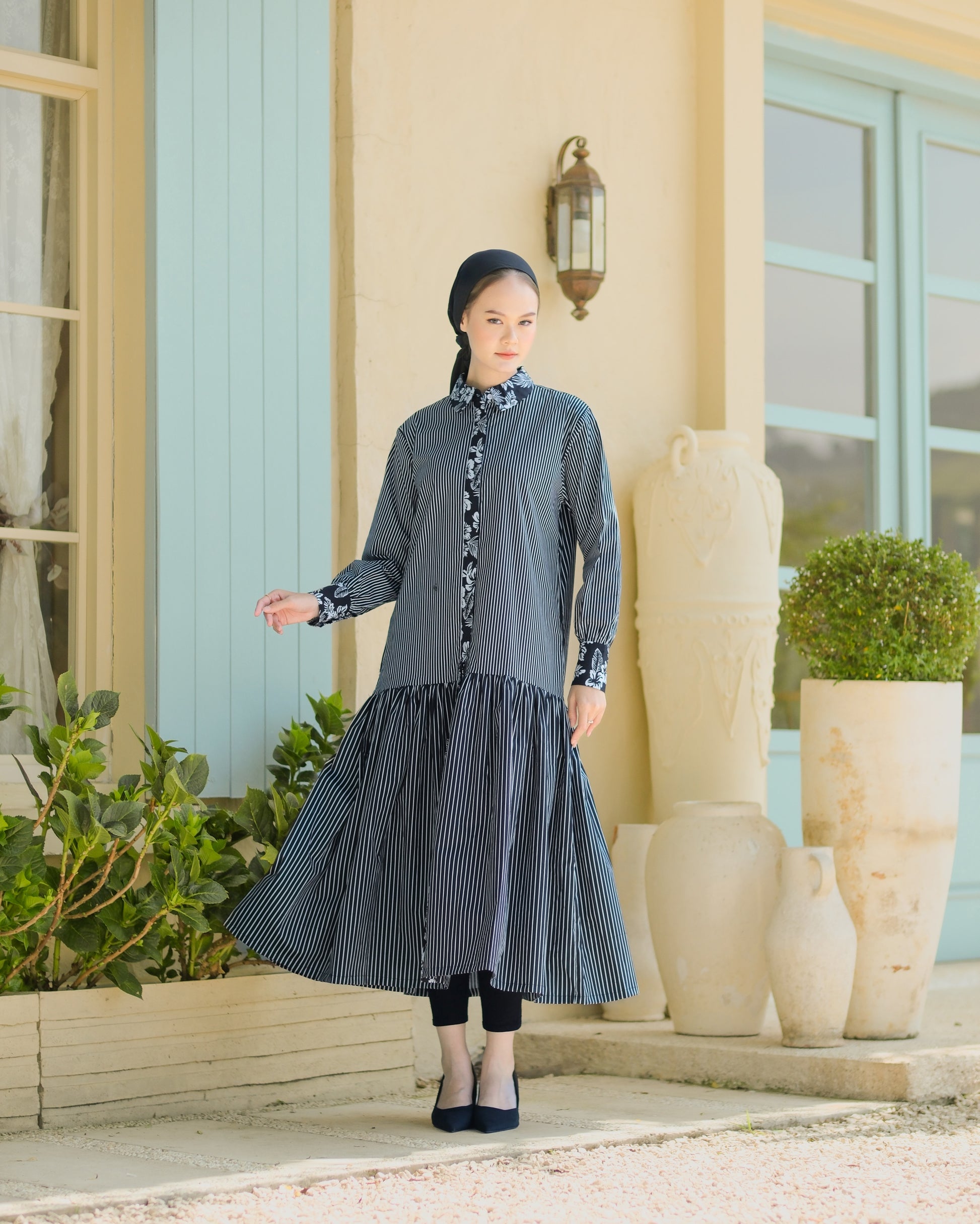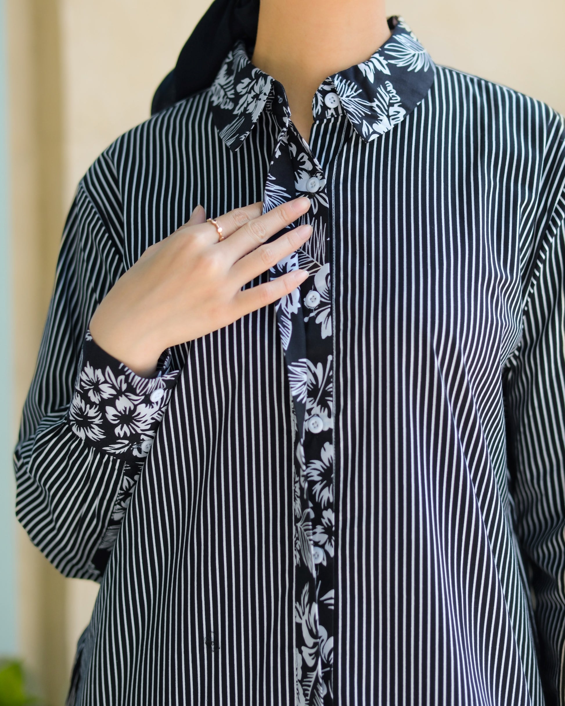 Introducing the "Rachell Dress Striped Black," a stunning dress that perfectly combines elegance and stylishness. This dress showcases an elegant design of Black and white stripes with captivating floral accents. Made from premium Japanese cotton Stretch, this dress offers unmatched comfort and luxury. Embrace charm and grace with the meticulously designed Rachell Black Striped dress, crafted to enhance your natural beauty. Make a captivating fashion statement with the Rachell Dress Black Striped and enjoy an unforgettable look.