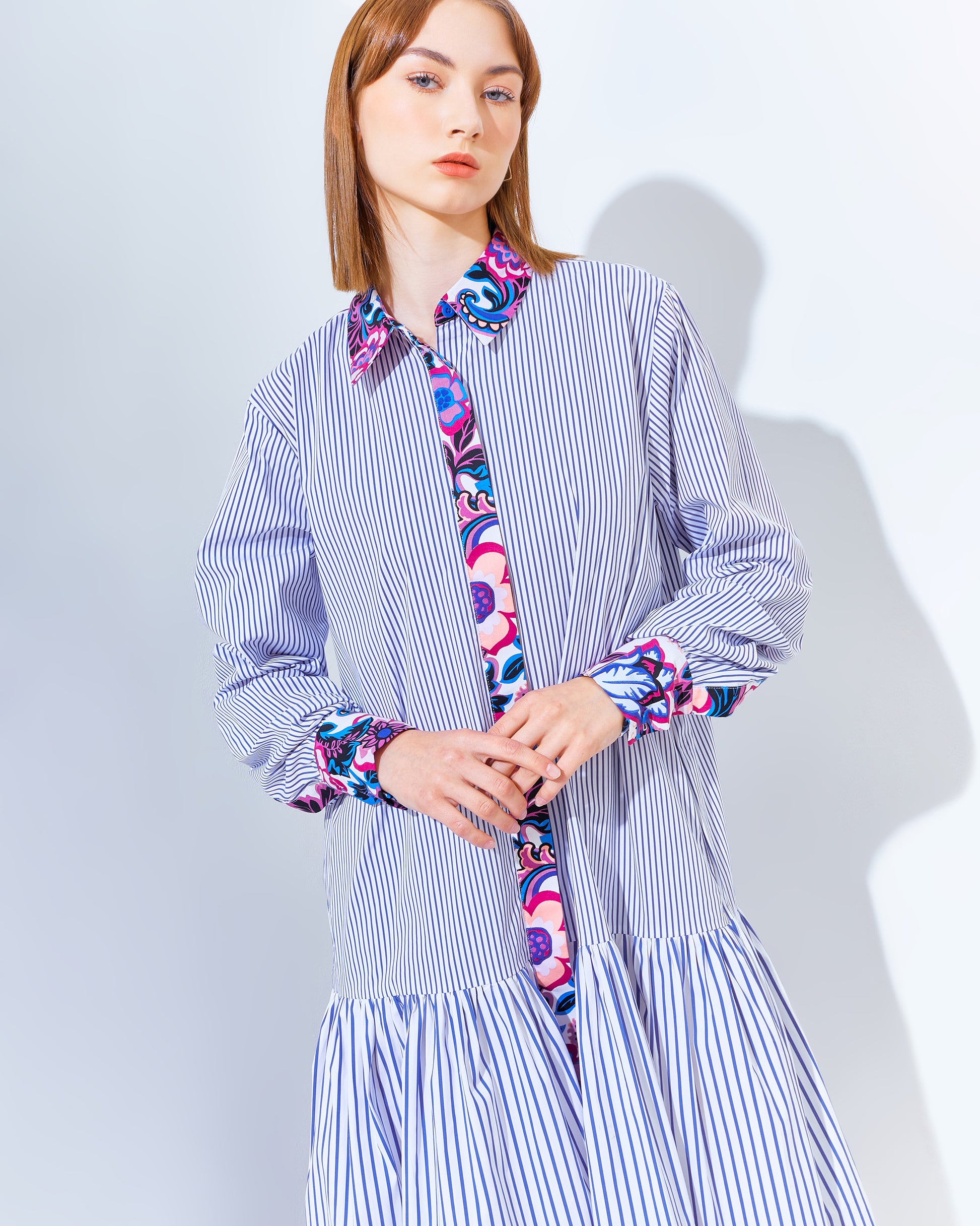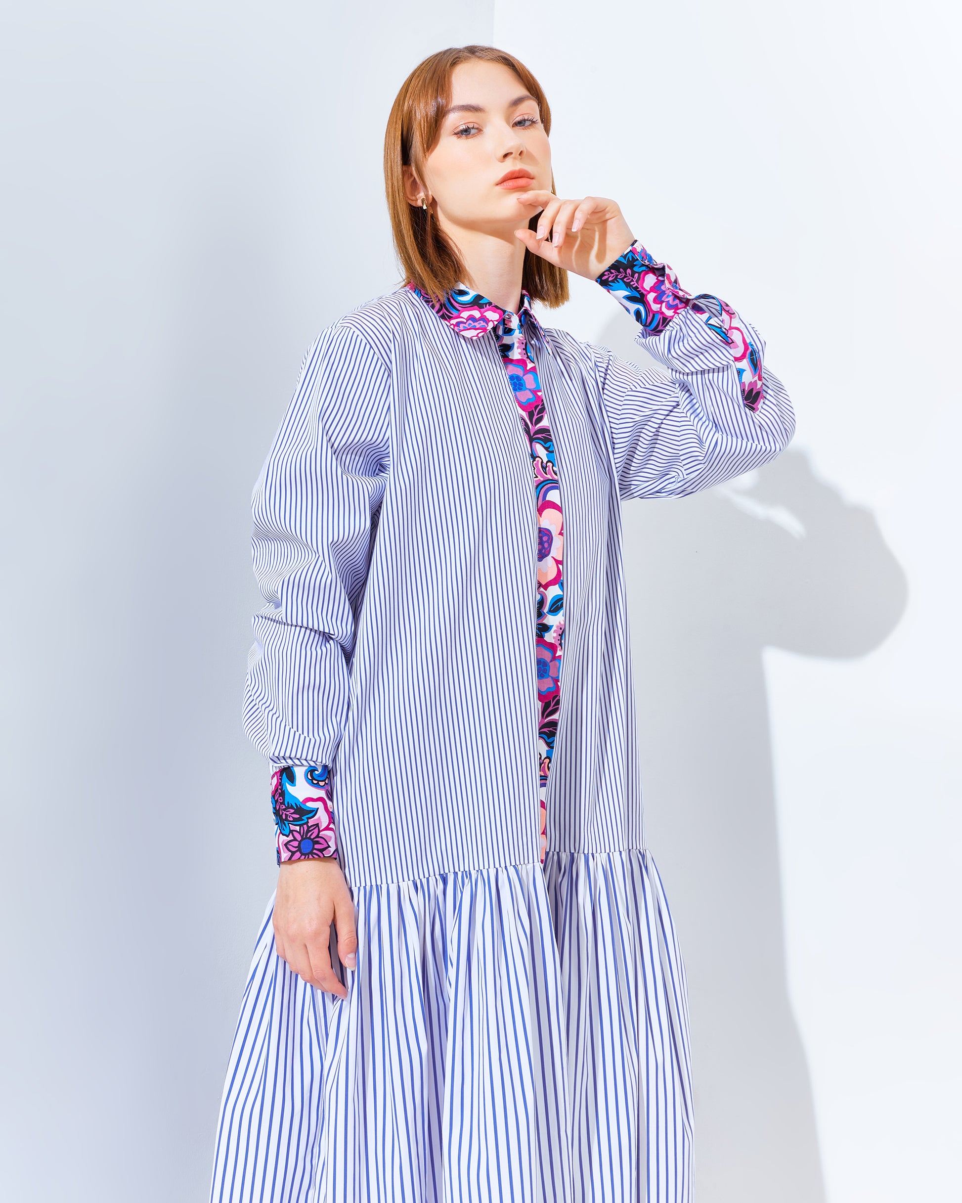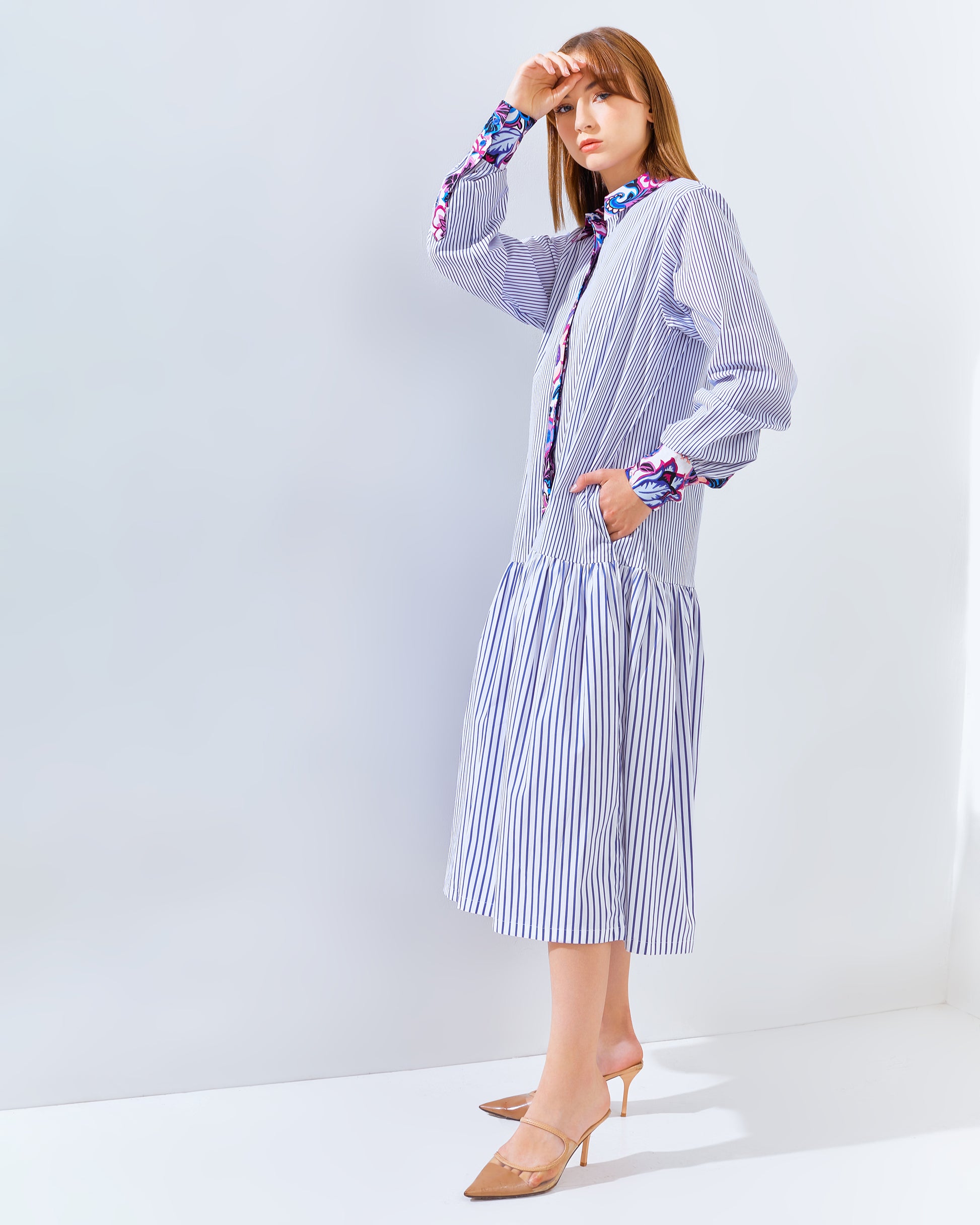 Introducing the "Rachell Dress Striped Navy," a stunning dress that perfectly combines elegance and stylishness. This dress showcases an elegant design of navy and white stripes with captivating floral accents. Made from premium Japanese cotton Stretch, this dress offers unmatched comfort and luxury. Embrace charm and grace with the meticulously designed Rachell Navy Striped dress, crafted to enhance your natural beauty. Make a captivating fashion statement with the Rachell Dress Navy Striped and enjoy an unforgettable look.