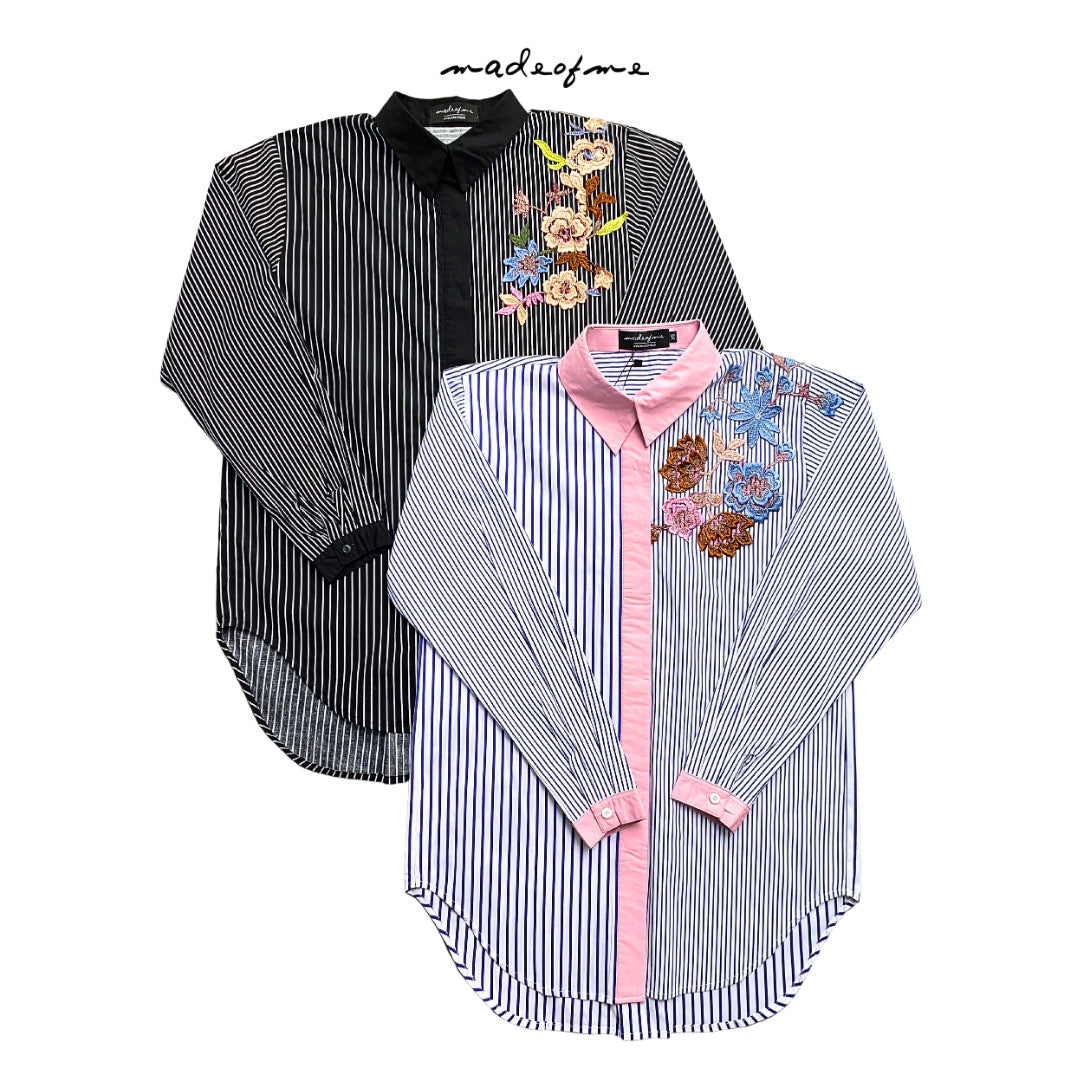 Designed with meticulous care, Rachella Navy menampilkan desain motif garis-garis yang memberikan sentuhan tampilan segar dan modern. Namun, yang membuatnya benar-benar spesial adalah aksen bunga-bunga cantik yang dipercantik dengan teliti di bagian depan baju, memberikan nuansa feminin dan elegan yang tak terlupakan.