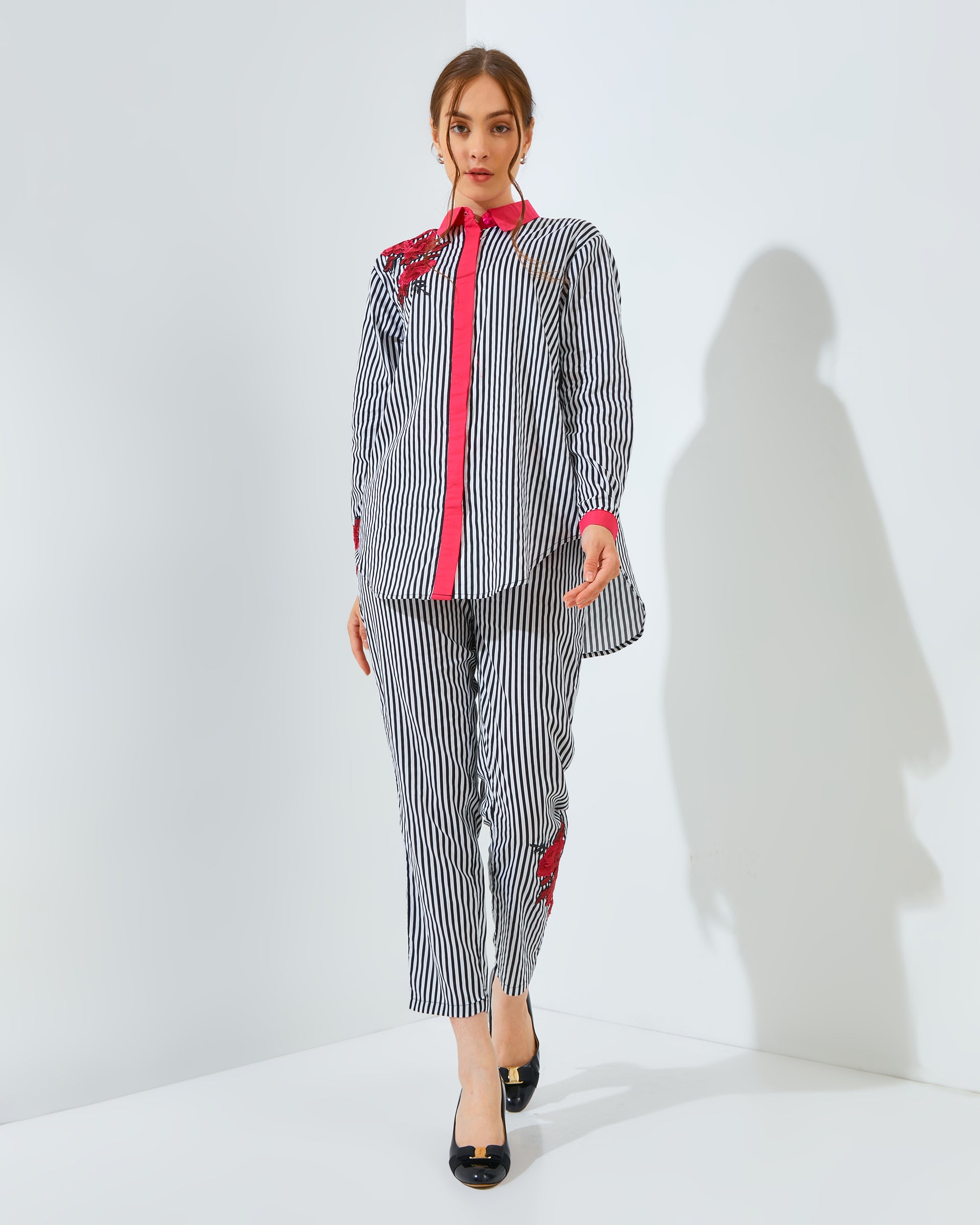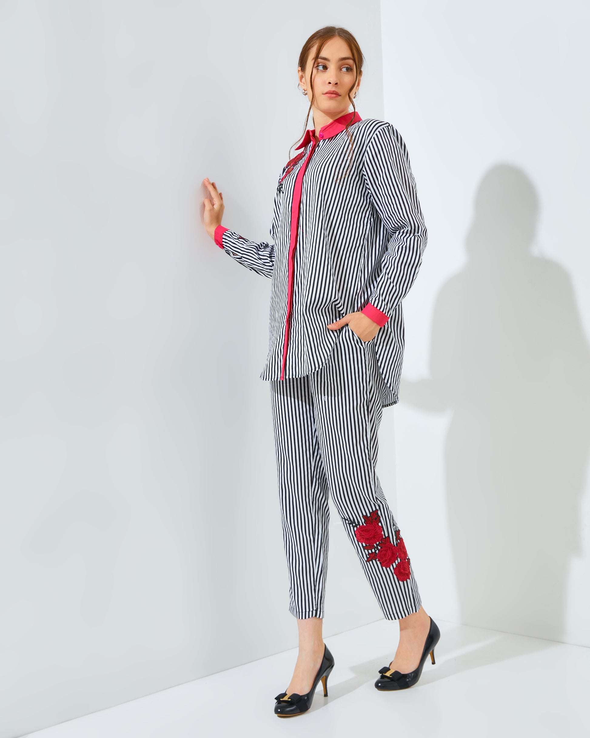Designed with meticulous care, Rachella Rose Stripes Fushia Black menampilkan desain motif garis-garis yang memberikan sentuhan tampilan segar dan modern. Namun, yang membuatnya benar-benar spesial adalah aksen bunga-bunga cantik yang dipercantik dengan teliti di bagian depan baju, memberikan nuansa feminin dan elegan yang tak terlupakan.