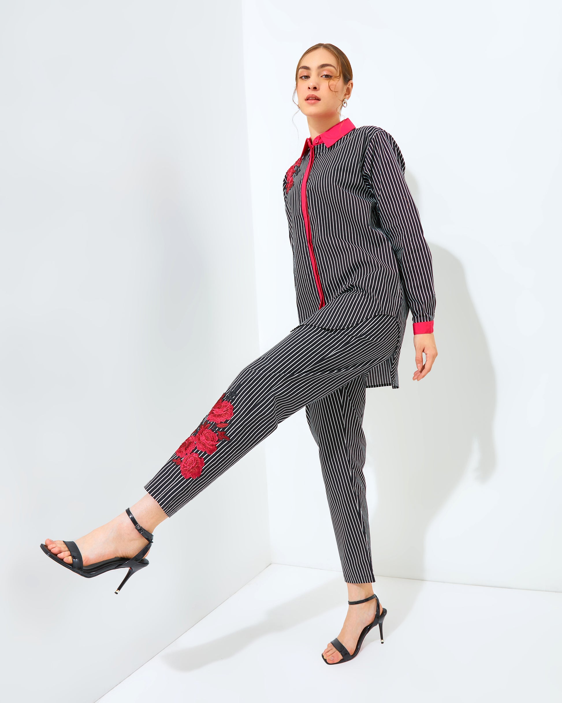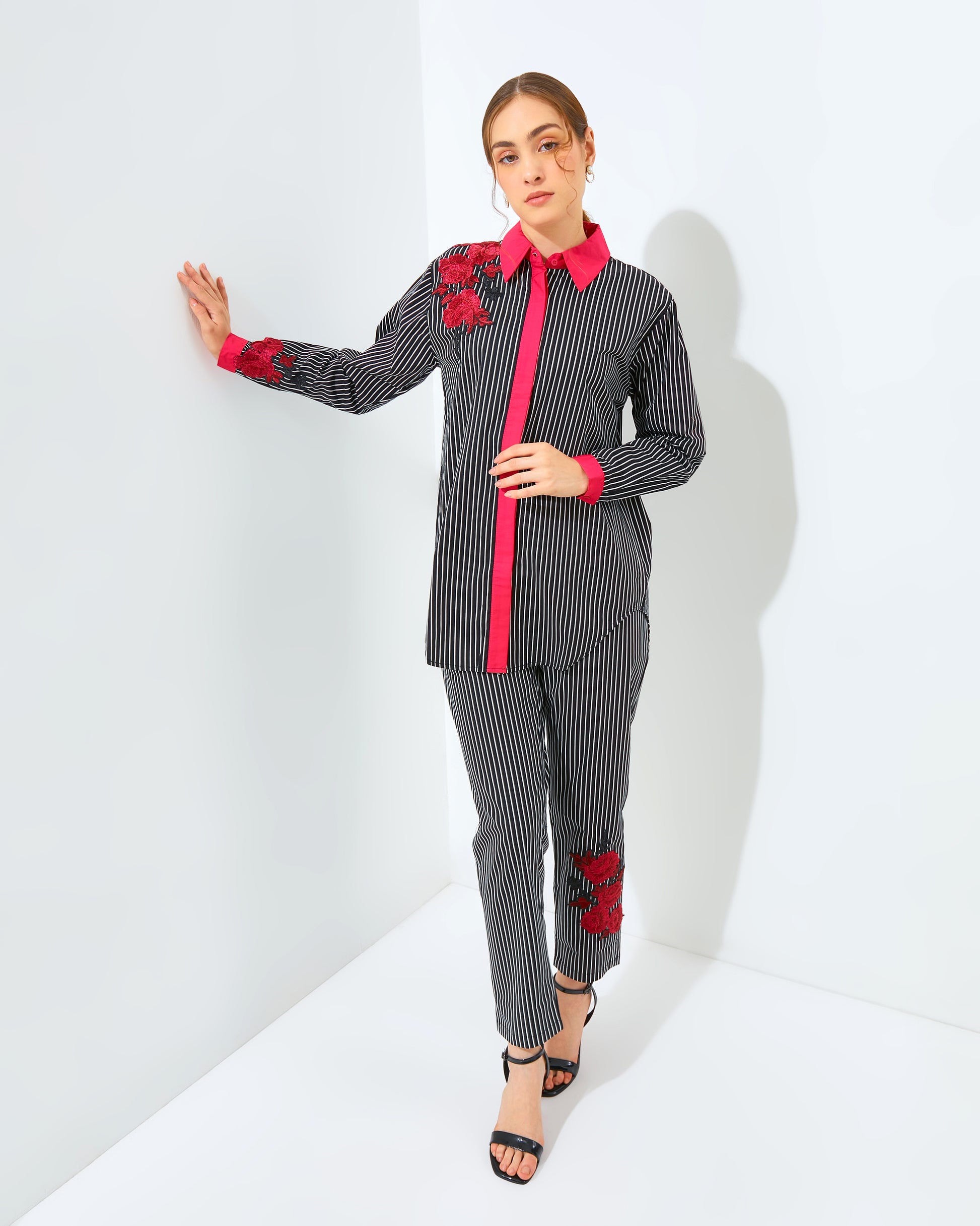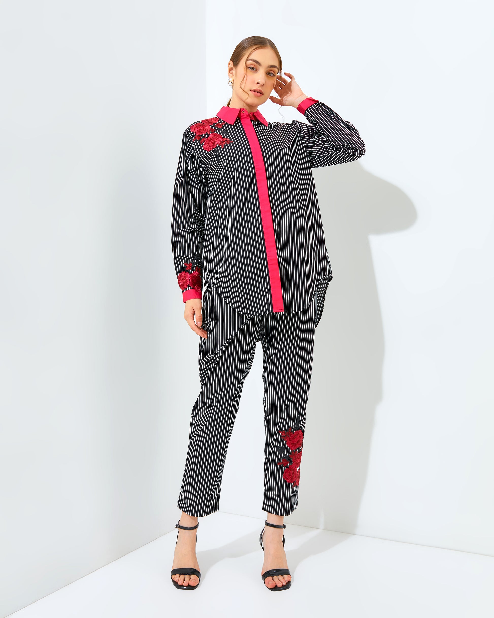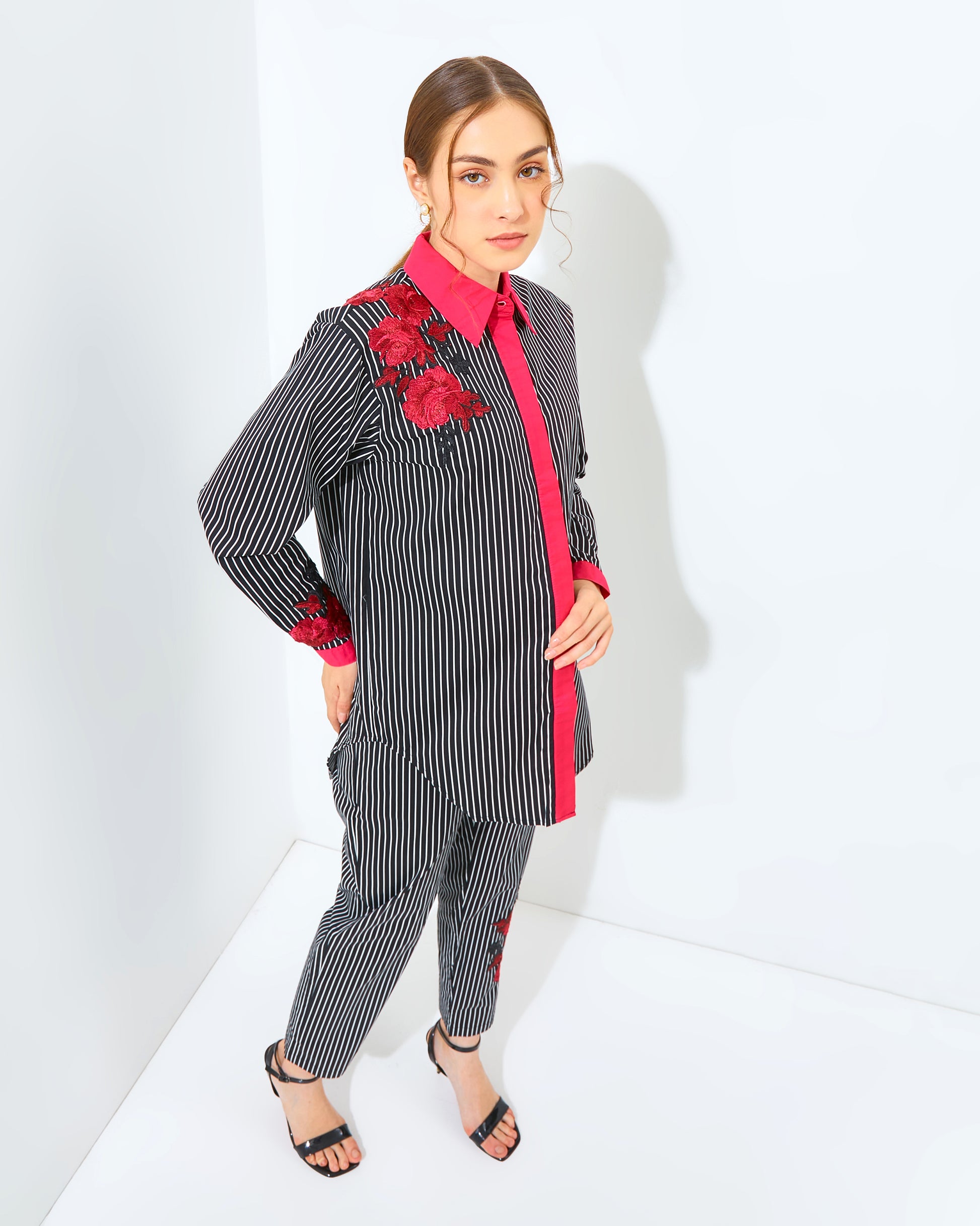 Designed with meticulous care, Rachella Full Black Fushia menampilkan desain motif garis-garis yang memberikan sentuhan tampilan segar dan modern. Namun, yang membuatnya benar-benar spesial adalah aksen bunga-bunga cantik yang dipercantik dengan teliti di bagian depan baju, memberikan nuansa feminin dan elegan yang tak terlupakan.