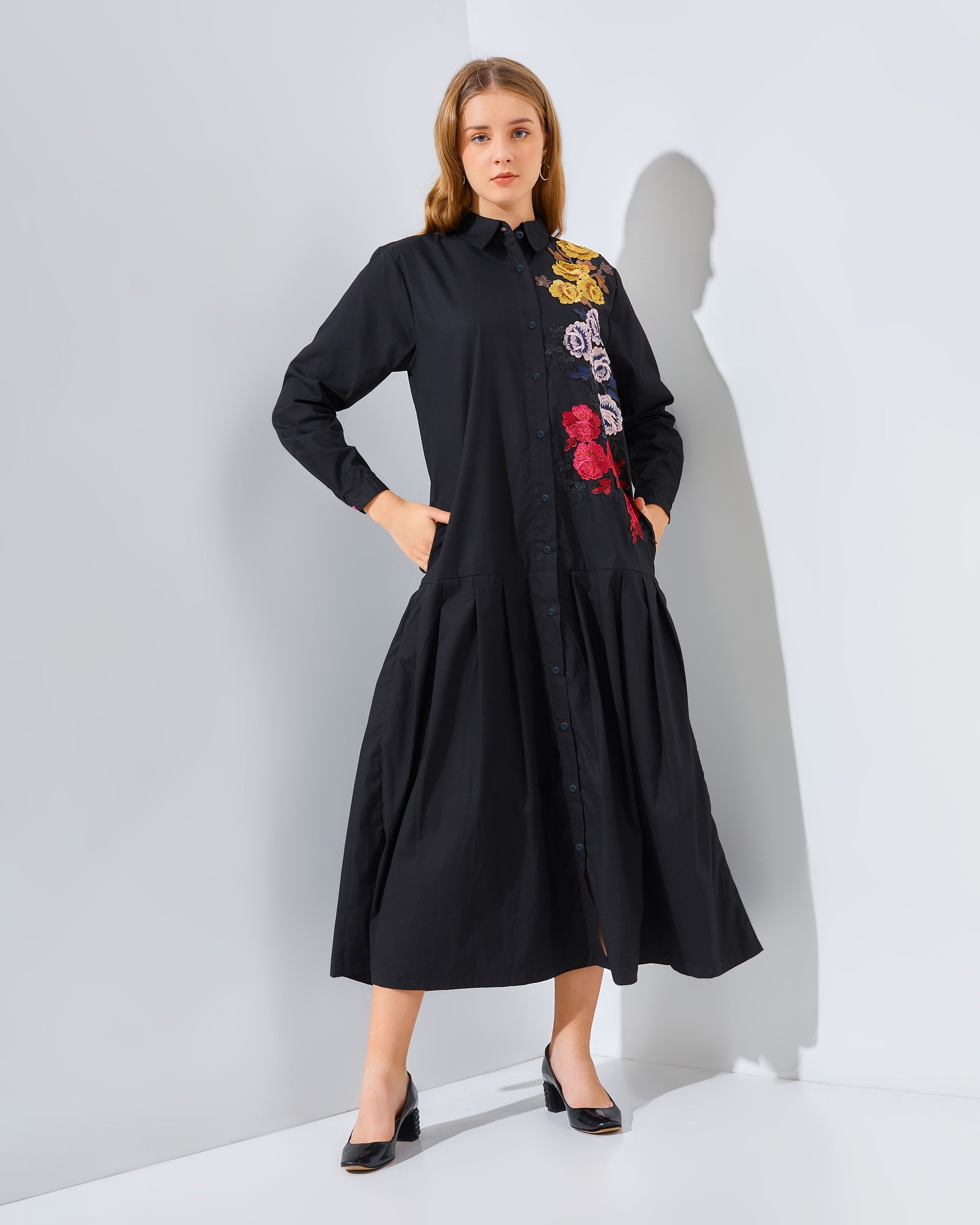 Elevate your style with the 'Rose Rachella Dress'! This women's dress is crafted from premium poplin cotton, ensuring maximum comfort. Its chic design is not only stylish but also mesmerizing, featuring beautiful and colorful Roses embroidery details on the chest. Embrace elegance and beauty with every step in this dress