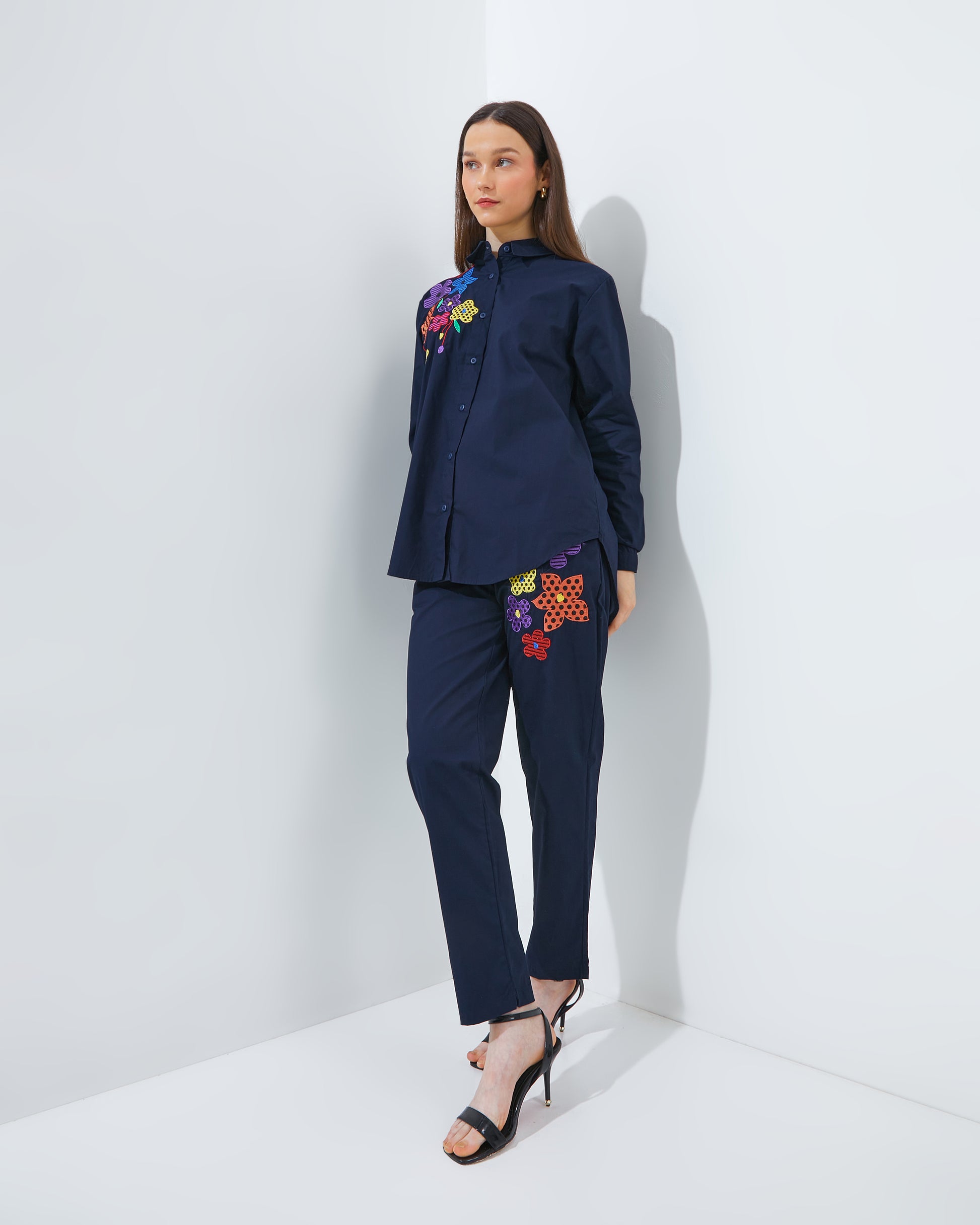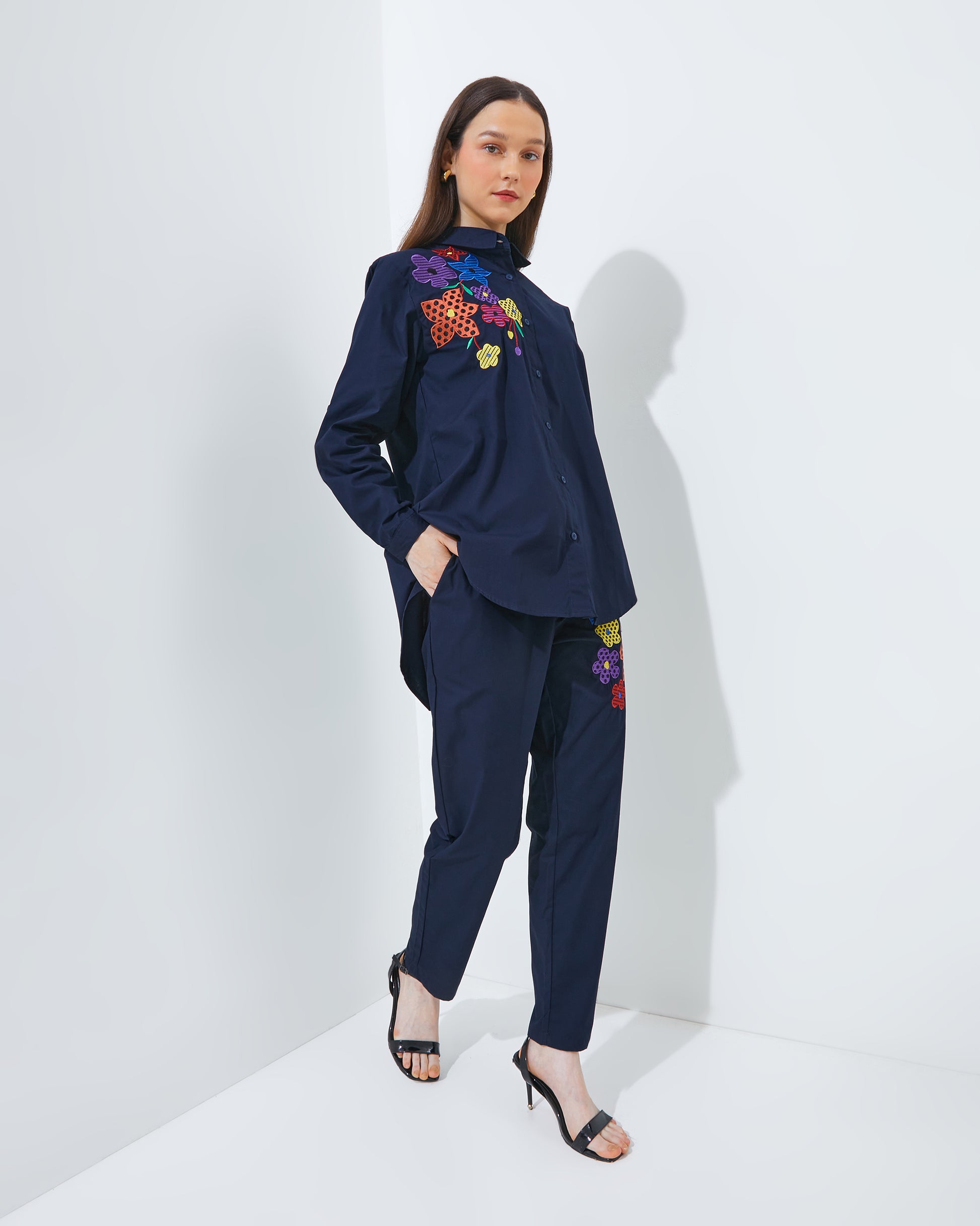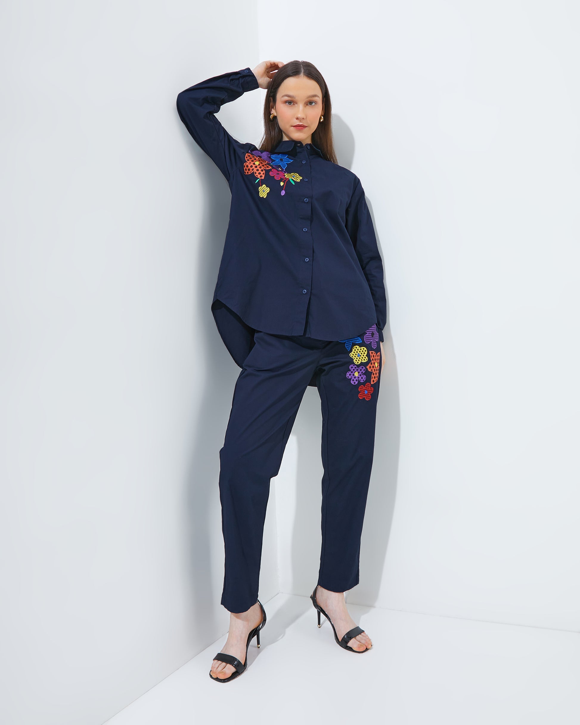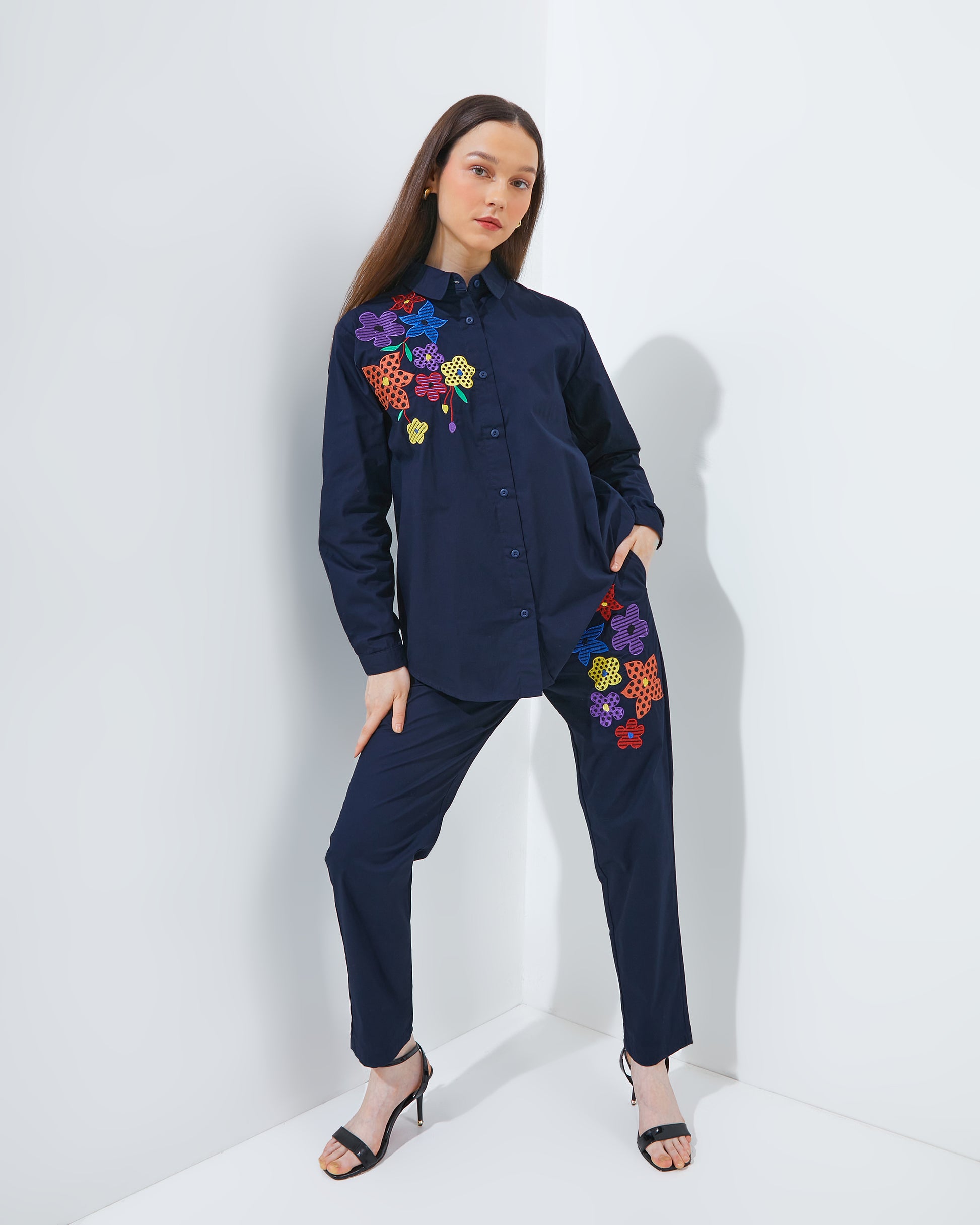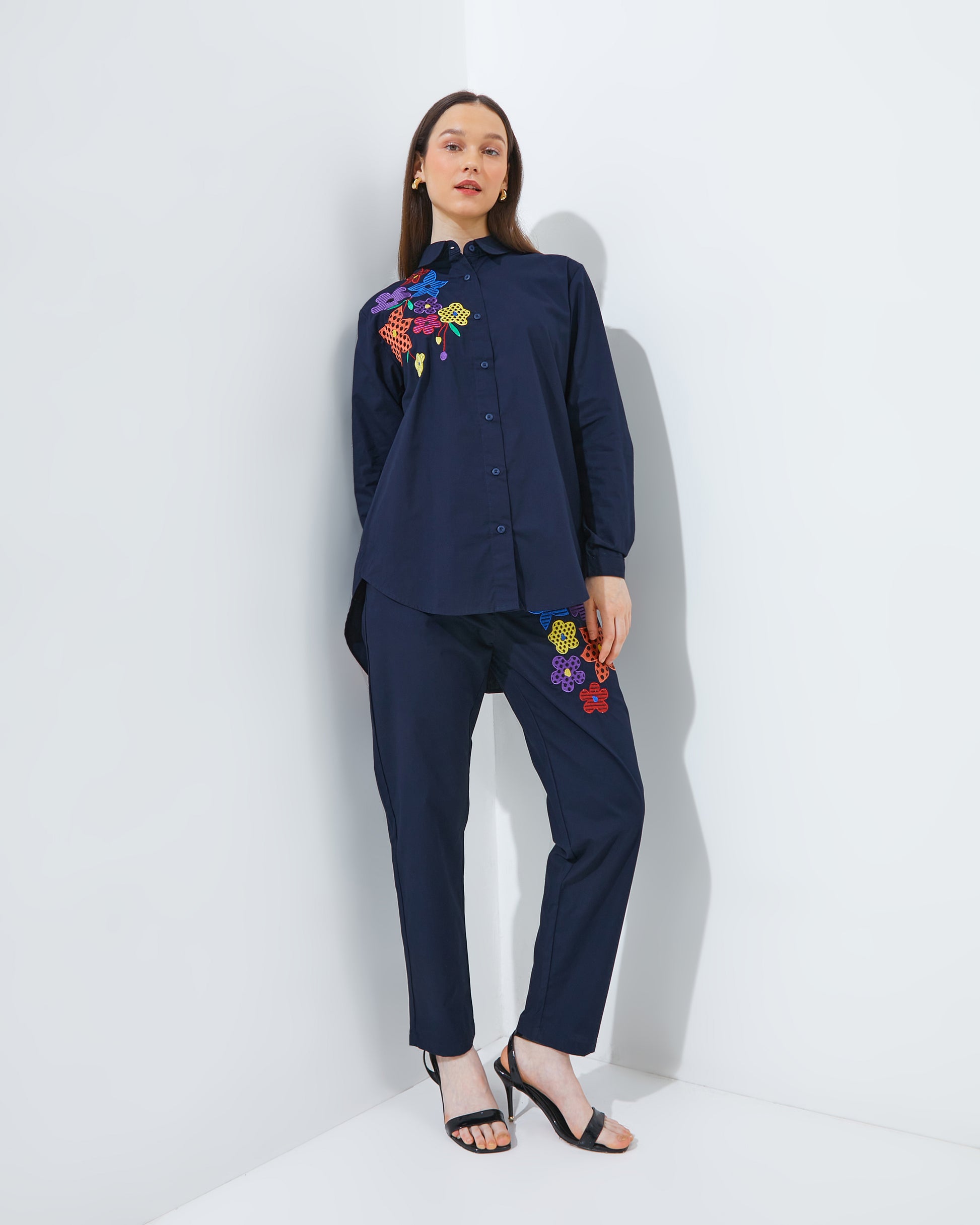 This Captivating piece is adorned with Geometric Floral embroidery.