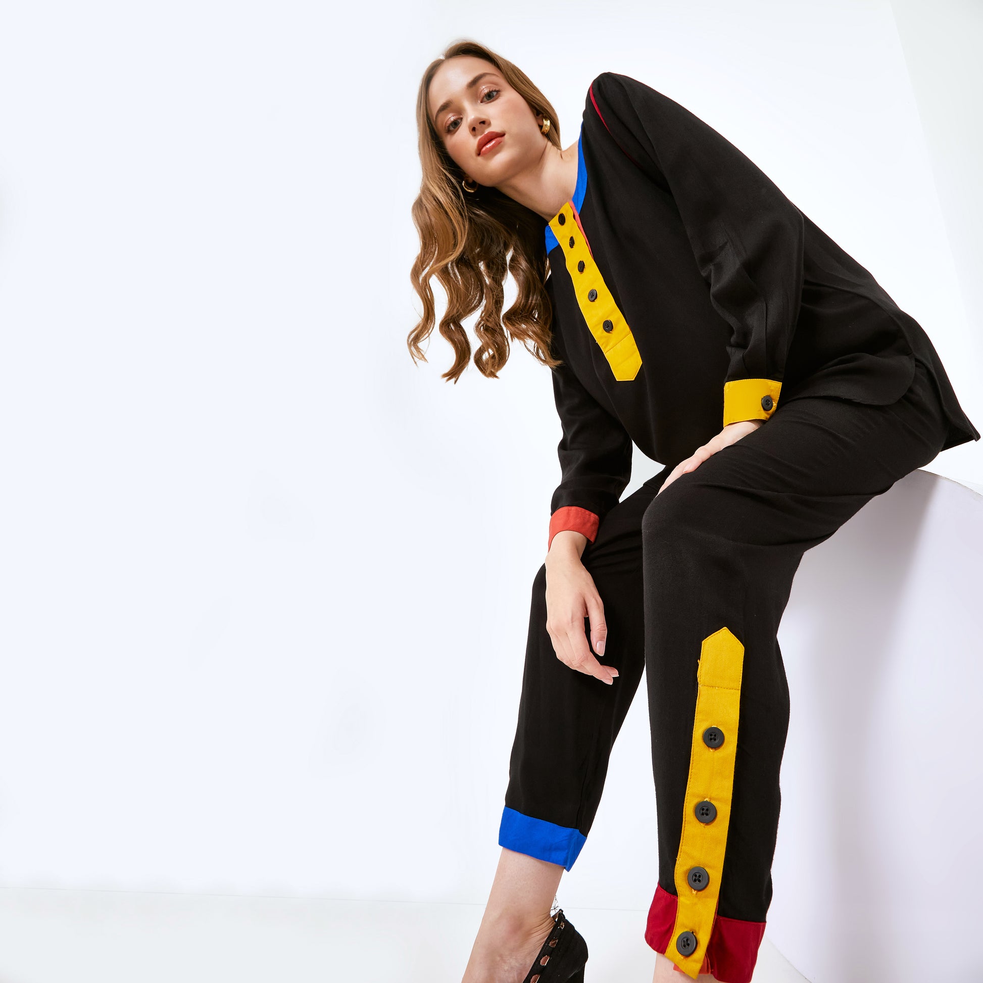 Matching Set kece ini detail nya super gemes deh, karna ada detail manset yg full color di bagian Top dan Pant nya. Manset + kancing yg bisa di buka atau ditutup bakal bikin OOTD kamu makin seruu.