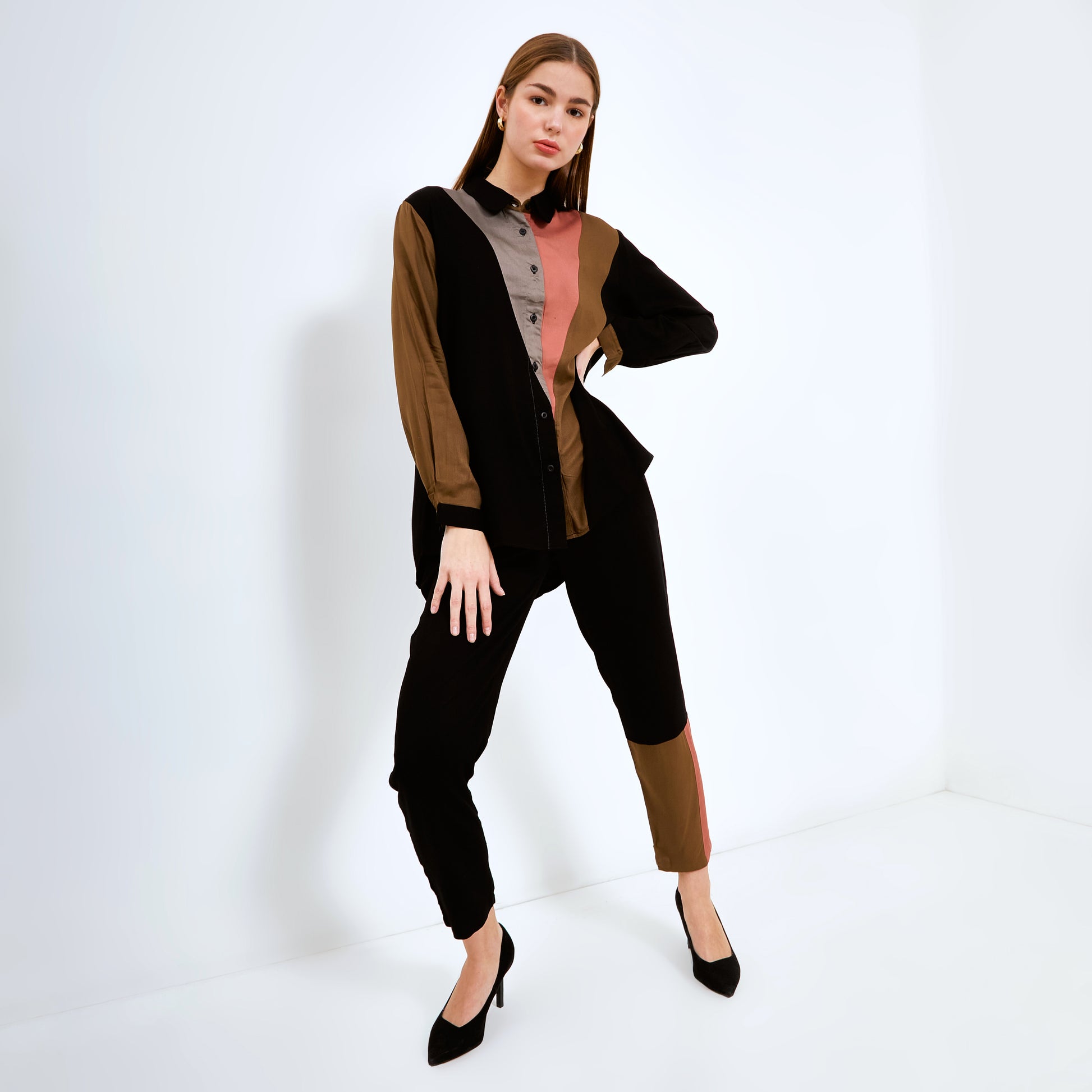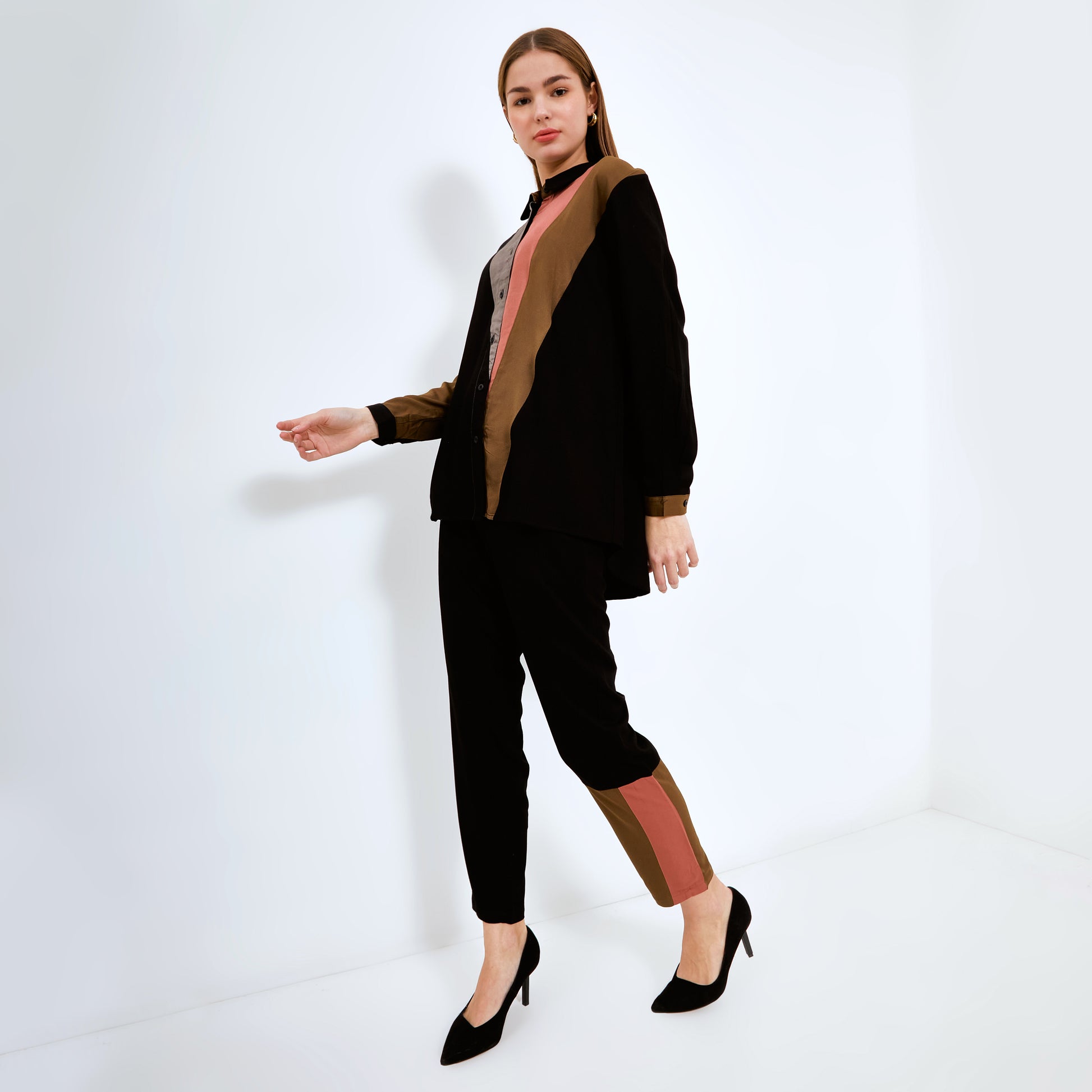 Disha Matching sets ini, selain kamu merasa nyaman, kamu juga bakal berasa keren!! Detail combine 4 warna pecah pola bagian depan membuat koleksi ini memberikan kesan mewah dan taylored.