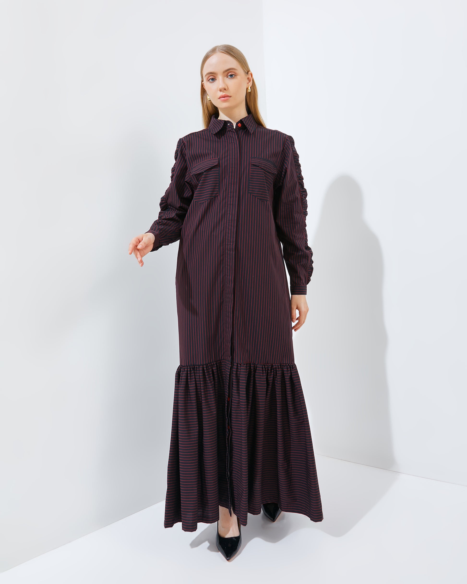 Our striped long dress is finally here. Designed with a flattering cut that gives you a slimmer look, in cool, stylish colors you’ll love. Made from lightweight poplin cotton — breathable, comfy, and easy to wear all day.