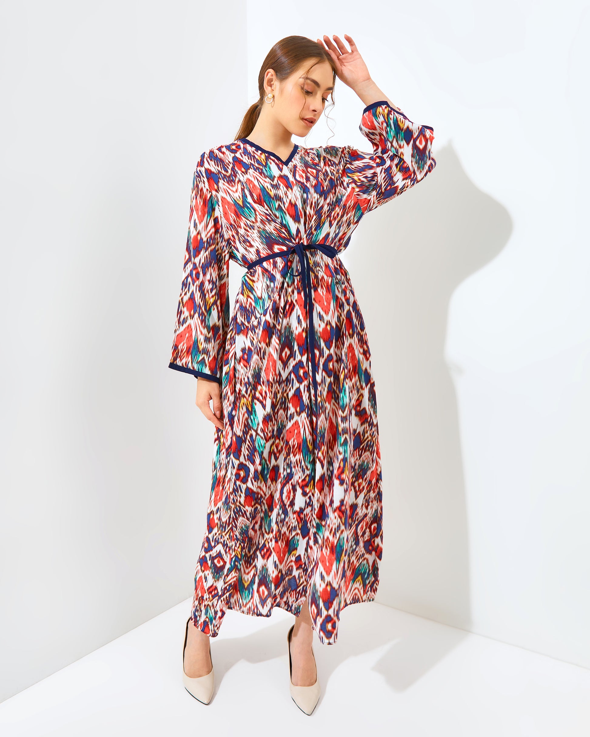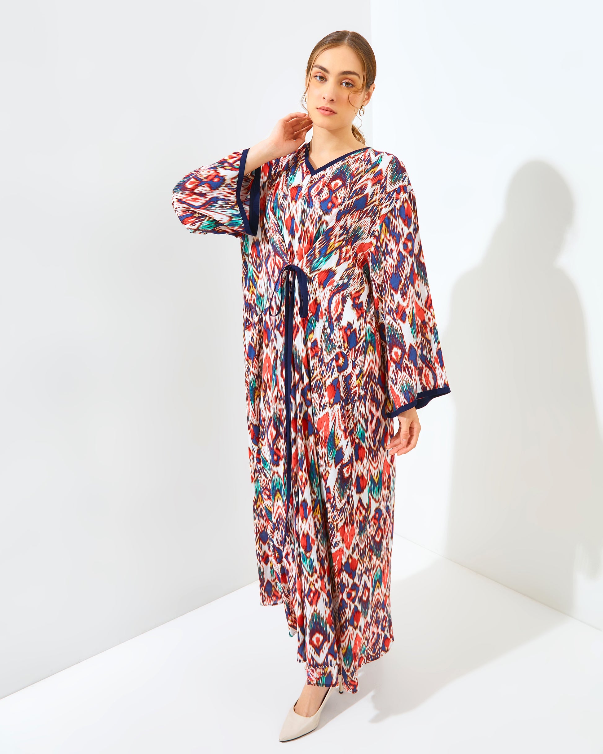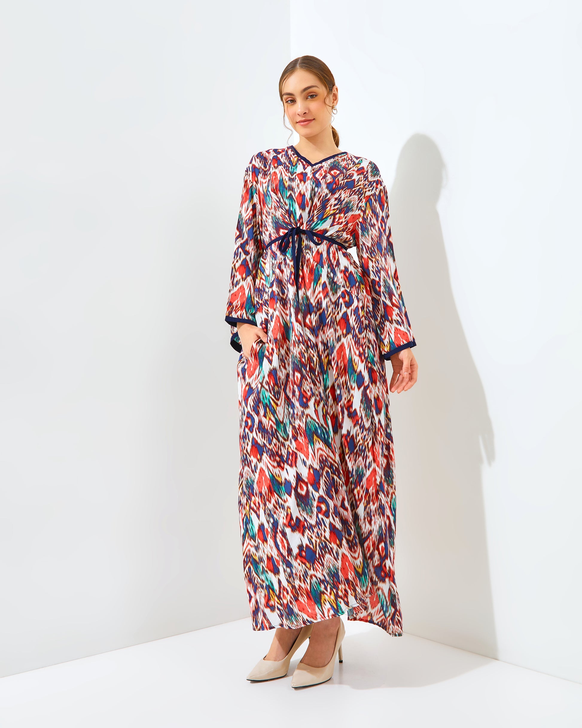 Introducing our luxurious kaftan dress, where traditional tenun patterns blend seamlessly with contemporary design. Enjoy the soft, lightweight feel and chic contrasting details, making it a must-have for the modern, stylish woman.