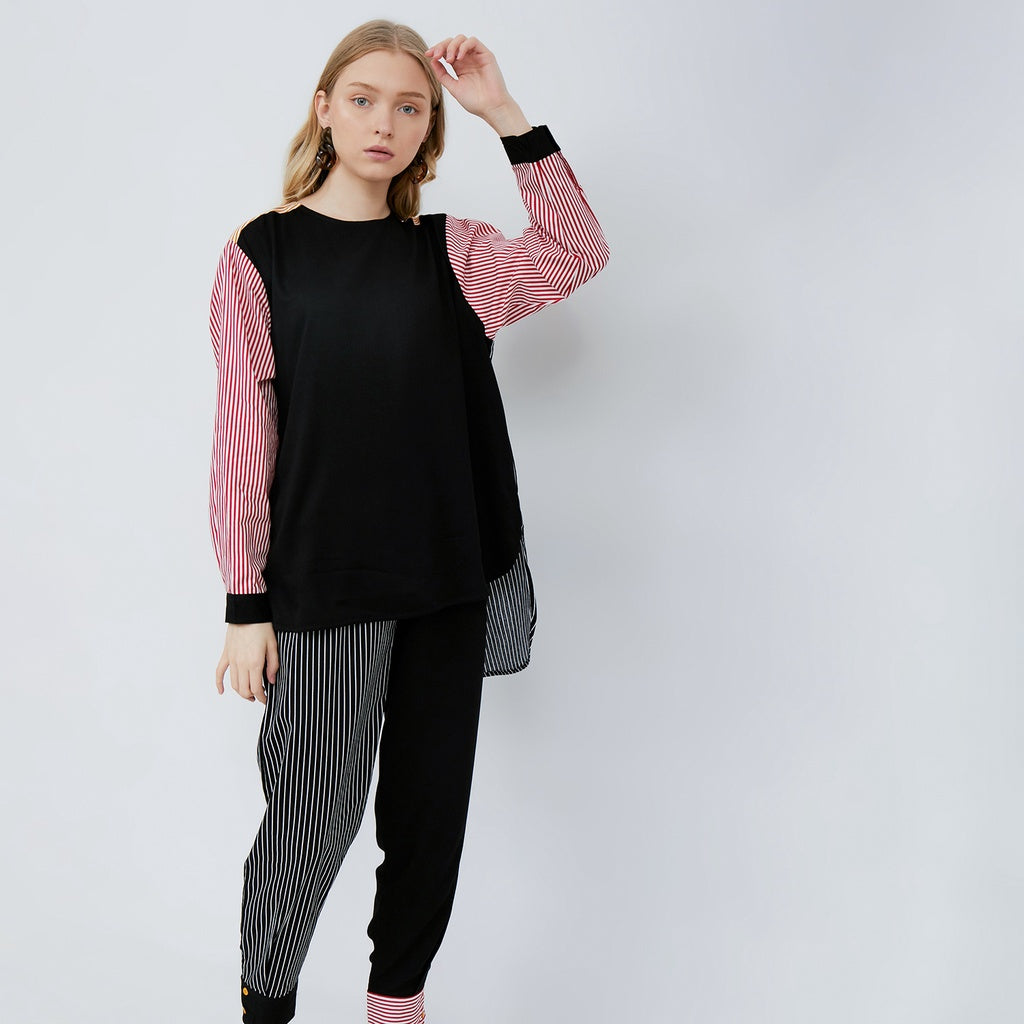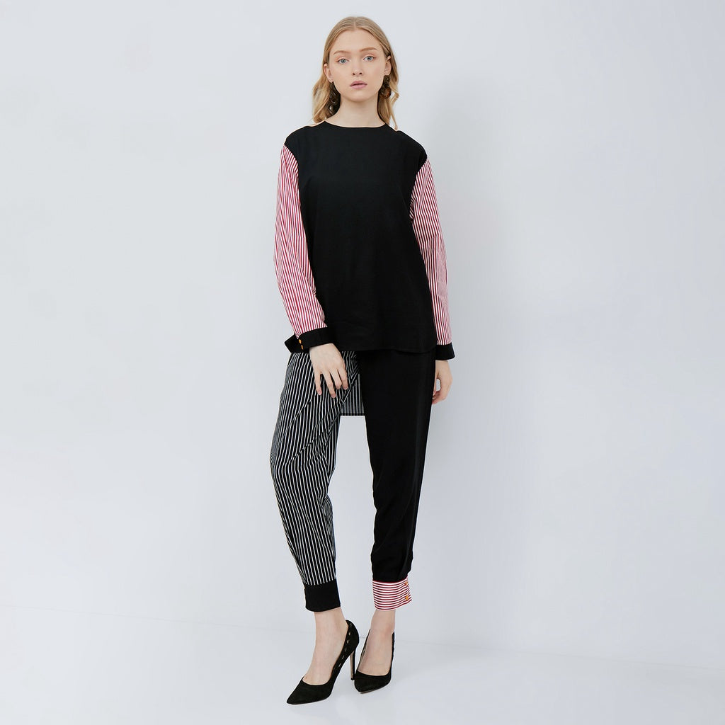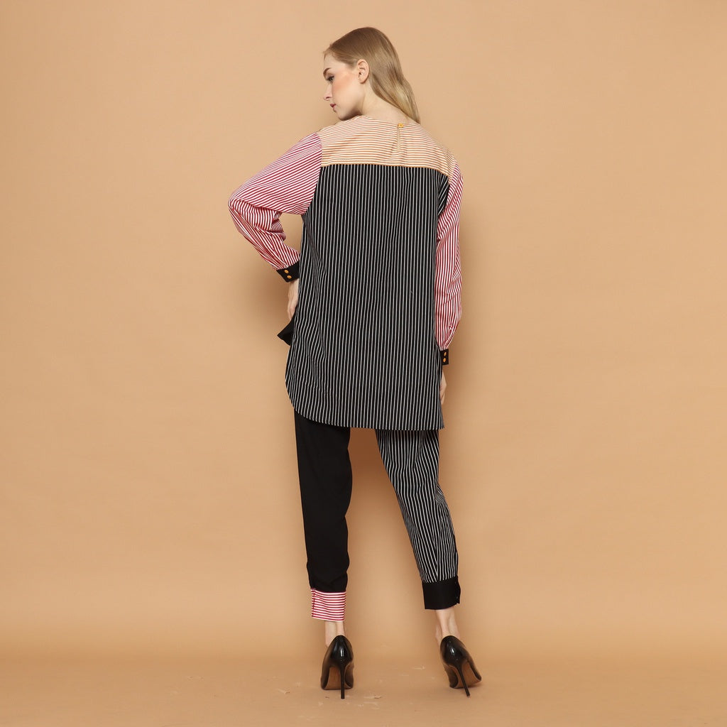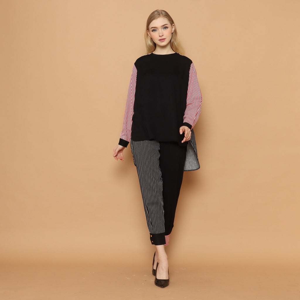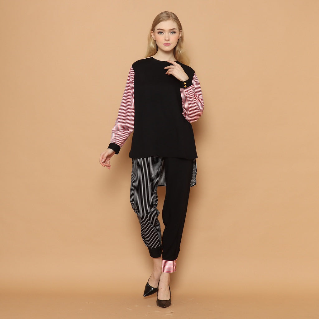 Zera Long Set (long sleeve top n long pants) dengan 1 warna hitam pada bagian depan,lalu di combine dengan 3 warna stripes yg berbeda. detail yg dijahit manual ini bisa membuat kmu terlihat gorgeous kapanpun!!juga ada tambahan pocket dibagian kanan dan kiri celana!!bahan yg digunakan rayon twill dan katun jepang yg nyaman dan adem untuk semua jenis kulit!!
